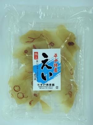 【メーカー名】平戸物産館 【内容量】100g590円 【原材料名】えいひれ、砂糖、唐辛子、食塩/ソルビトール、調味料(アミノ酸)